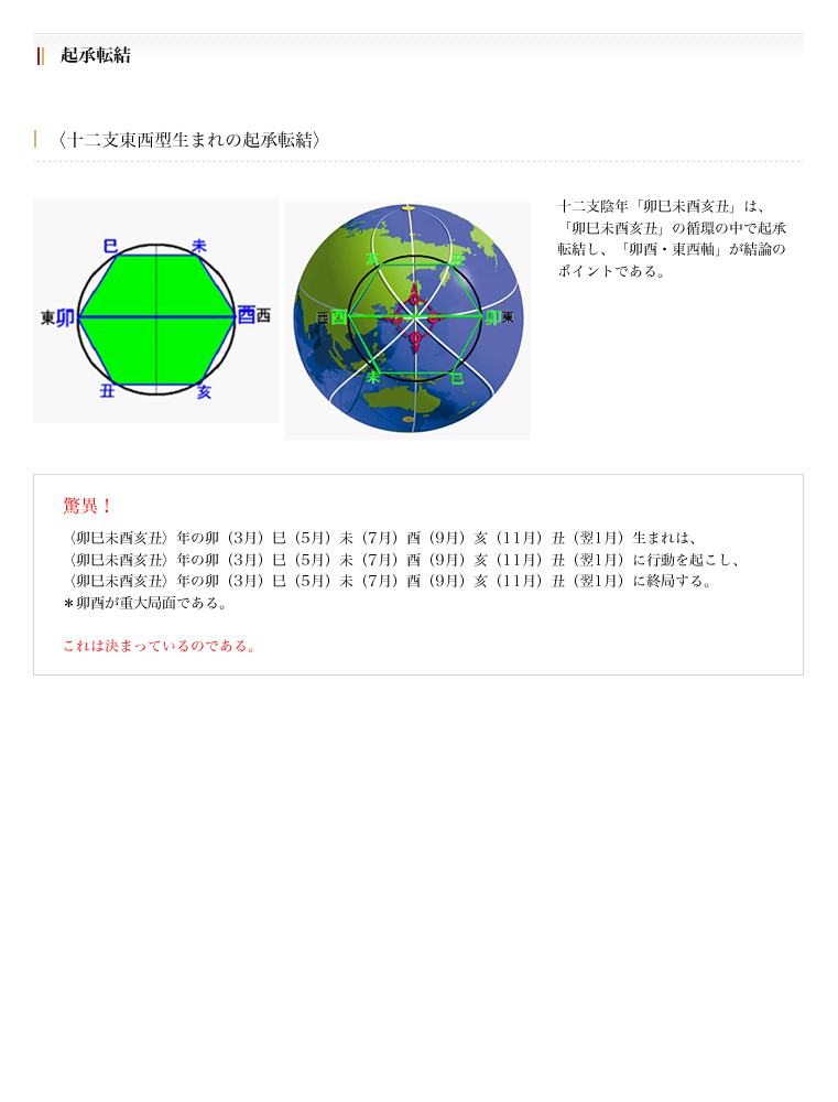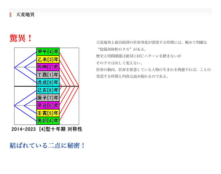 〈歴史・人と時間の経過〉には、起承転結の経路と陰陽対称性の法則によって作られる一定の節目がある。 これを解き明かすことによって歴史と人と時間の必然性と運命がすべて、見えてくる。
