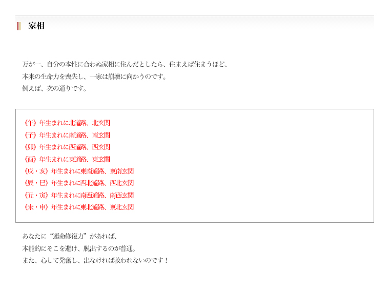 住人の生まれ本質を無視して、ただ抽象的に“家相”の良し悪しを論ずるのは、まったく無意味です。