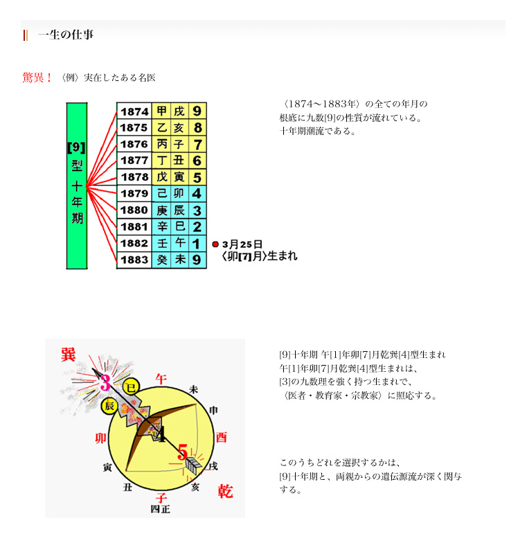 人の性格は、〈十年期九数〉〈生年月生まれ符号〉で解明されます。 解明精度に愕然とするでしょう!