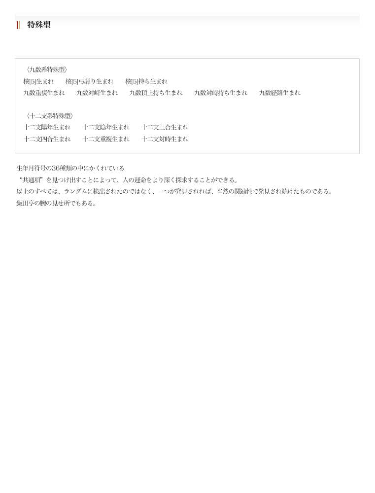 特殊生まれ型は〈九数特殊系〉と〈十二支特殊系〉
